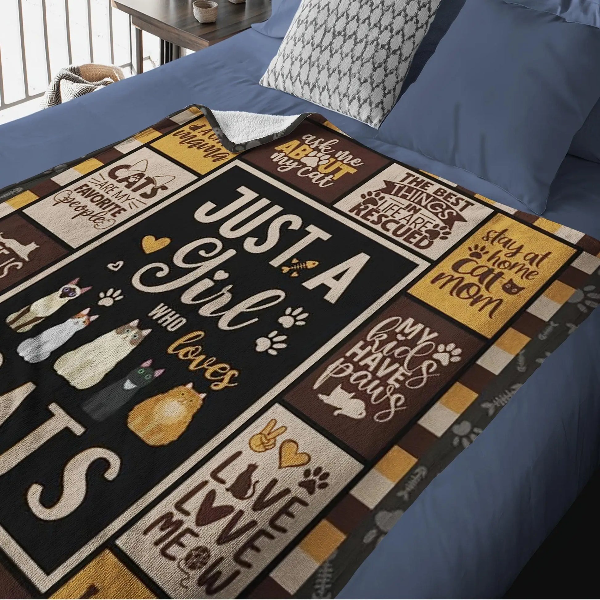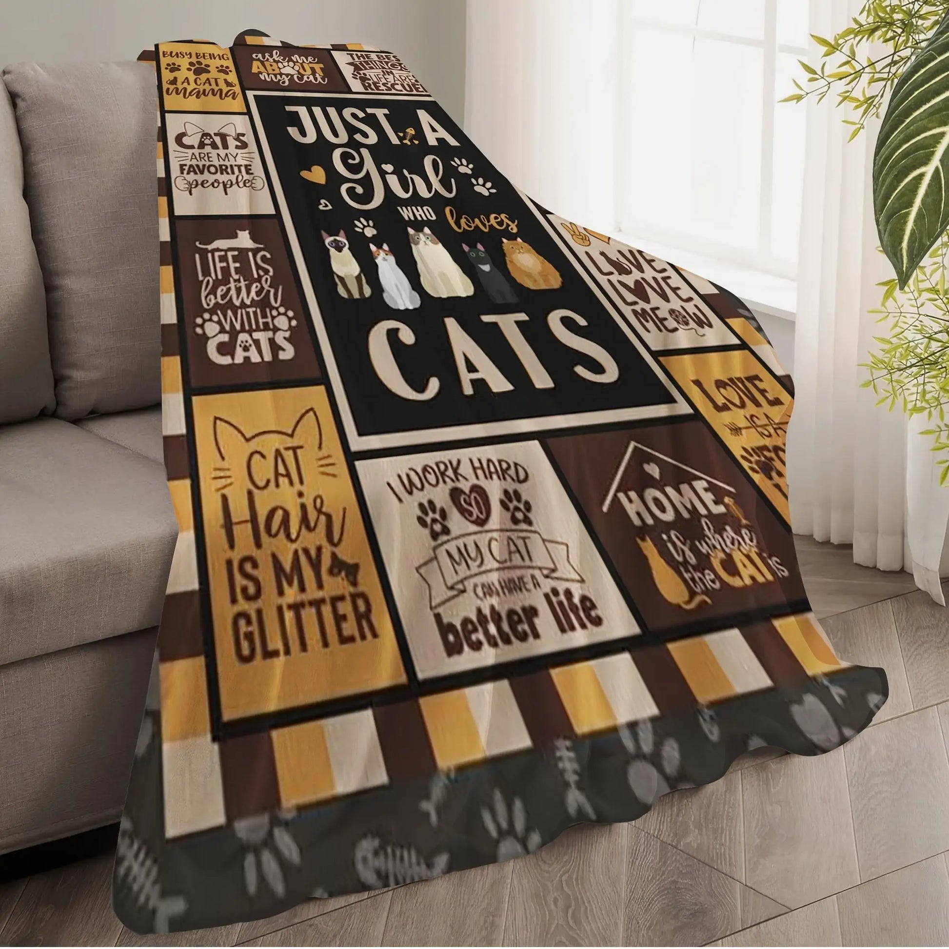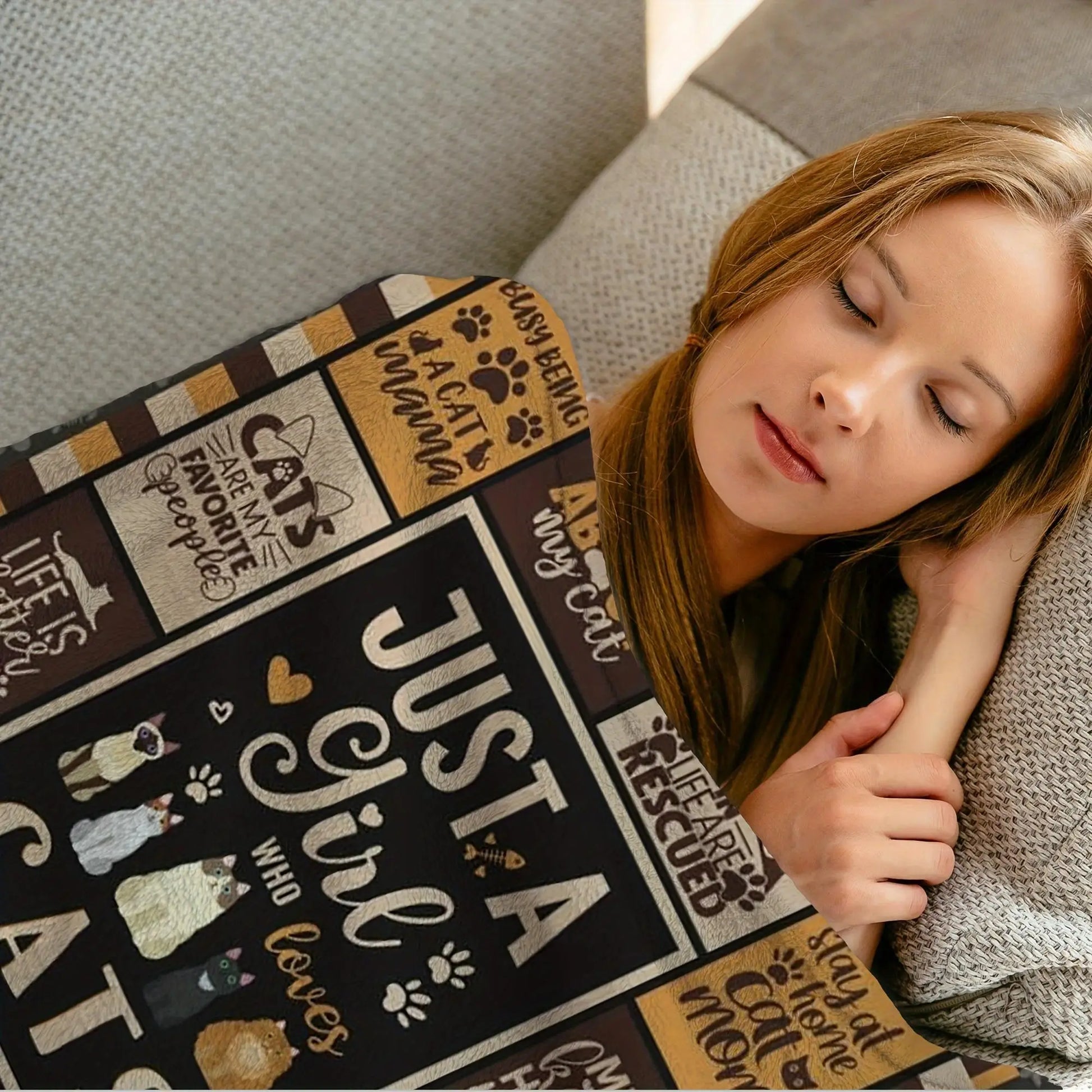 1Pc Blanket with Cat Pattern, Just for A Cat Loving Girl, Soft and Warm Flannel Blanket, Seasonal Gift, Soft Flannel Blanket