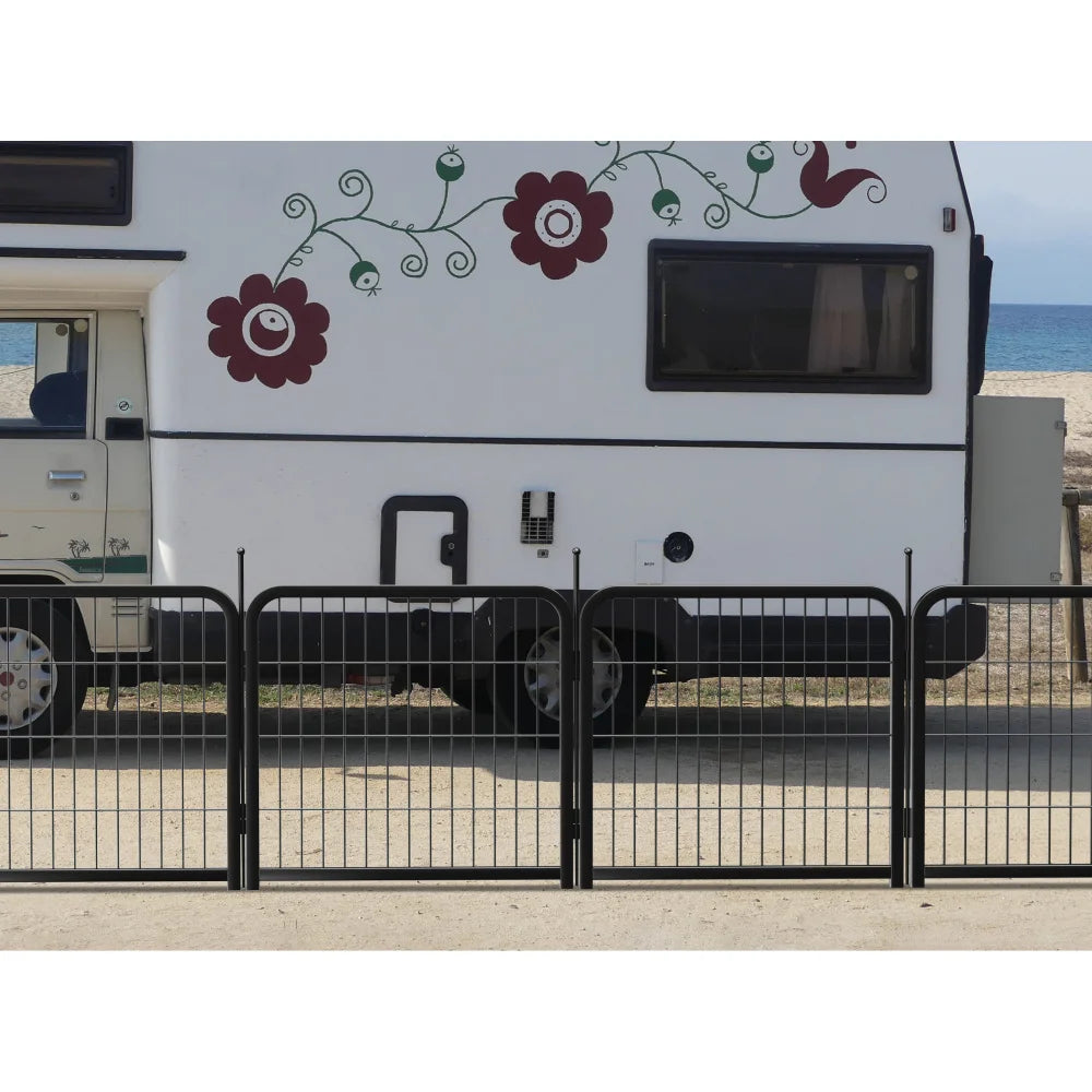 - Multi-scenario use: The outdoor powder coating keeps them from rusting, which makes it ideal for RV camping, traveling, or for use in the yard. Can be assembled into a variety of shapes and sizes, including square and rectangular, adding or removing panels as needed to achieve the desired shape. For indoor use, we recommend placing it on a dog mat or rug to prevent the bars from scratching the floor.